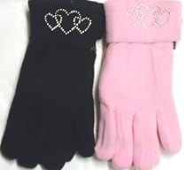 Set of Two Pairs One Size Mongolian Fleece Microfiber Lined Very Warm Gloves Trimmed with Rhinestone Hearts for Women and Teens Good for Valentine Day Review: Read more »