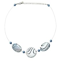 More Details » Zebra Shell with Pearl Beaded Wire Necklace Black and White 16'' 19'' Review: This is a pretty necklace. I wear it to work (in an office) our out for a night on the town.It goes with just about everything. I get a lot of compliments on it. It is lightweightand comfortable to wear. 2 ... Read more »